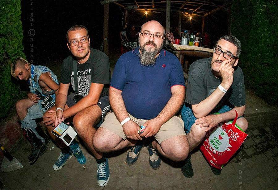 Naravno, ja i ne znam zašto nas uopšte zovu na ovakve festivale. Mi nemamo praktično ništa zajedničko sa publikom koja ih pohađa. Gledam klince oko sebe – svi u crnom, koži, pocepanim farmerkama i majicama, okićeni pirsinzima, tetovažama, prišivačima i bedževima. Pričaju mešavinom engleskog i vojvođanskog, mirišu na piće, seks i in situ pripremanu vegansku hranu. Puni su energije.