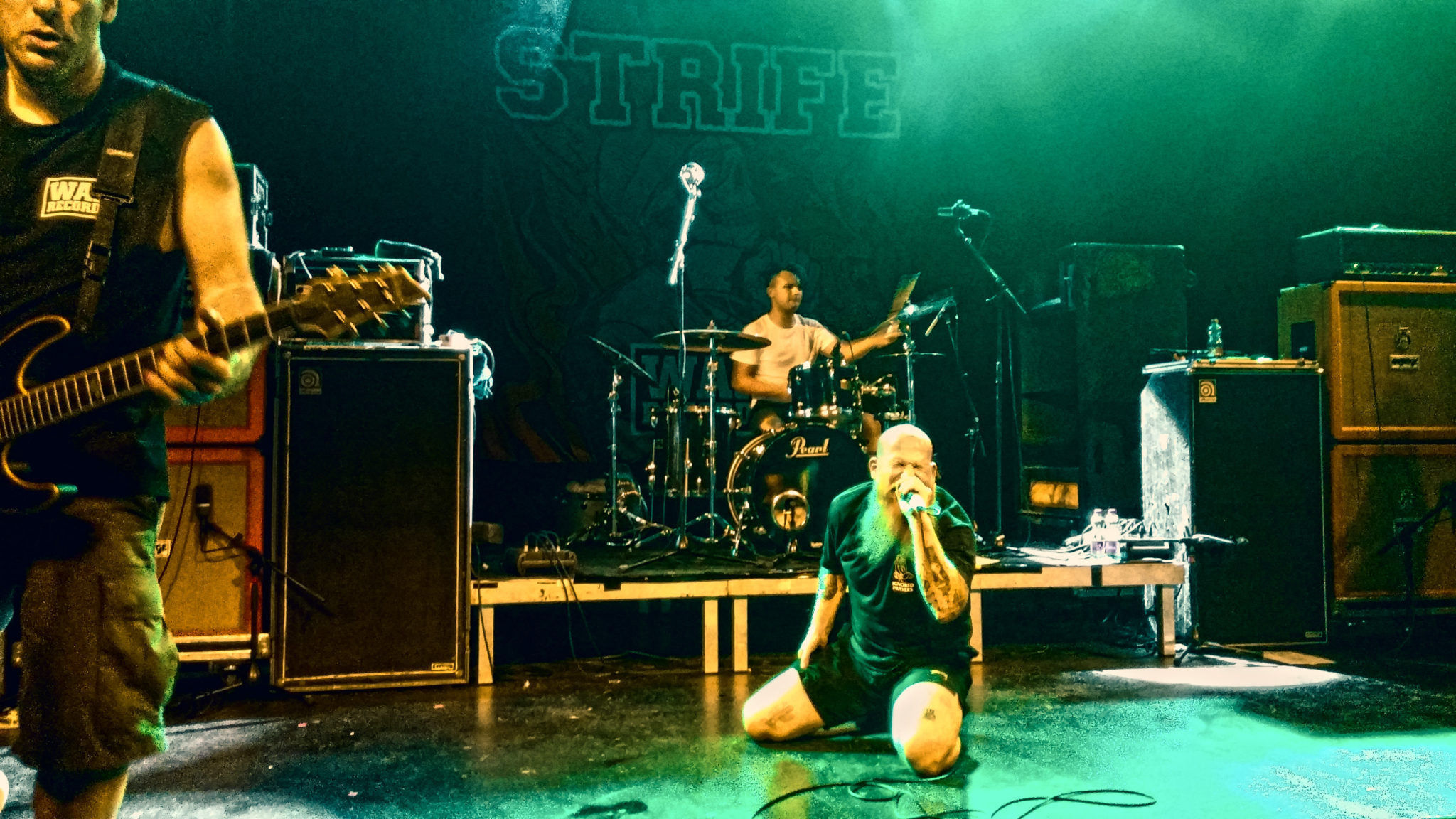 Rani početak svirke uslovio je da propustim austrijski bend 21 Stories. Čujem komentare da je na njima bilo baš prazno i da su svirački mnogo blaži i od H2O. Ušao sam unutra kada je Strife već bio na bini i svakog trenutka se spremao da krene sa rokanjem. Otvorili su gig sa „Carry The Torch“. Auuu kako je to zaoralo! Gitare režu, vokal kida… pizdarija! Naredne pesme na repertoaru bile su „Waiting To Die“ i „Torn Apart“ koje otvaraju drugi i četvrti album. Hit za hitom. Stajao sam uz samu binu i pažljivo pratio svaki Rickov pokret. Toliko se majstor uživeo i predao emocijama da je često završavao na podu i kolenima a pred kraj i u publici. Sa prvog albuma odsviraše samo „Lift“ i „Through And Through“, ukupno 11 pesama, plus „Rise Above“ iz publike za fajront, sve zajedno skoro 40 minuta. Da li je dovoljno za peticu? Jeste!